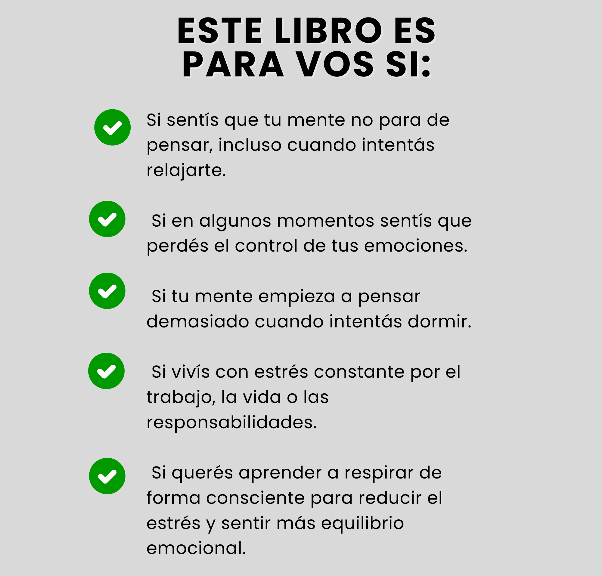 “Lo que más me gustó es que no da vueltas. Va directo a ayudarte en momentos reales de ansiedad y estrés. Muy recomendable.”